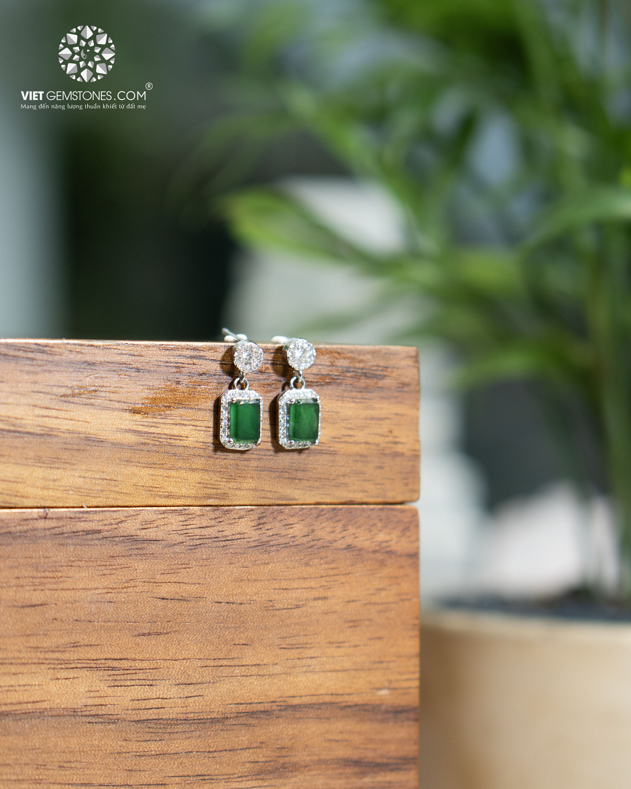 Bông tai được chế tác từ bạc 950 cao cấp, phủ bạch kim sáng bóng, giúp sản phẩm bền đẹp, chống xỉn màu và luôn giữ được vẻ sang trọng. Sự kết hợp giữa bạc cao cấp và Ngọc Phỉ Thuý tạo nên tổng thể tinh tế, hài hòa và quý phái.