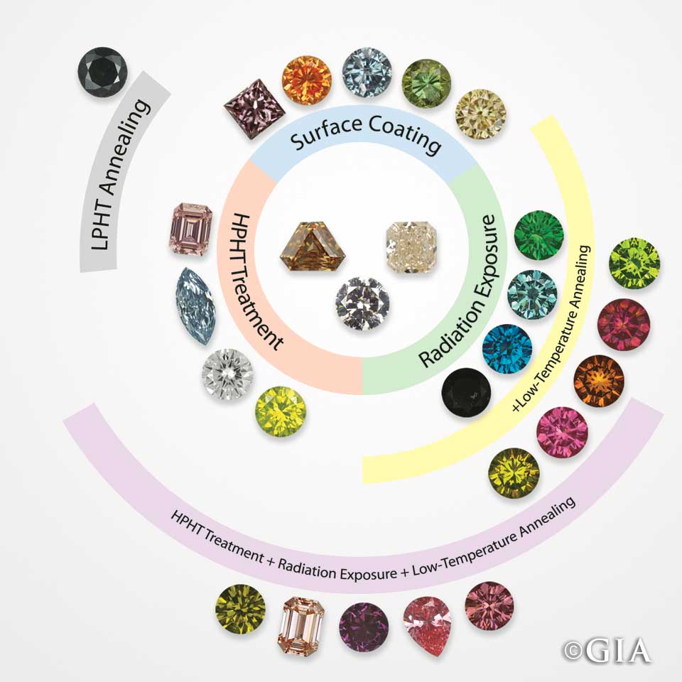 Không giống như phương pháp chiếu xạ cũng dùng để thay đổi màu sắc trên kim cương, sự thay đổi của kim cương đã được xử lý qua phương pháp xử lý nhiệt độ và áp suất cao được bảo tồn vĩnh viễn, không hư hao theo thời gian vì đây là phương pháp mô phỏng quá trình kết tinh của viên kim cương trong tự nhiên, đốt cháy giai đoạn bằng công nghệ hiện đại.