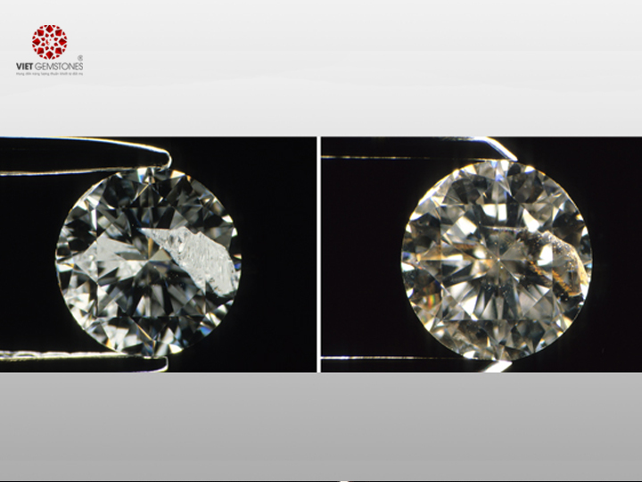 - Kim cương: Dùng thủy tinh lấp đầy khe nứt để làm tăng độ tinh khiết.