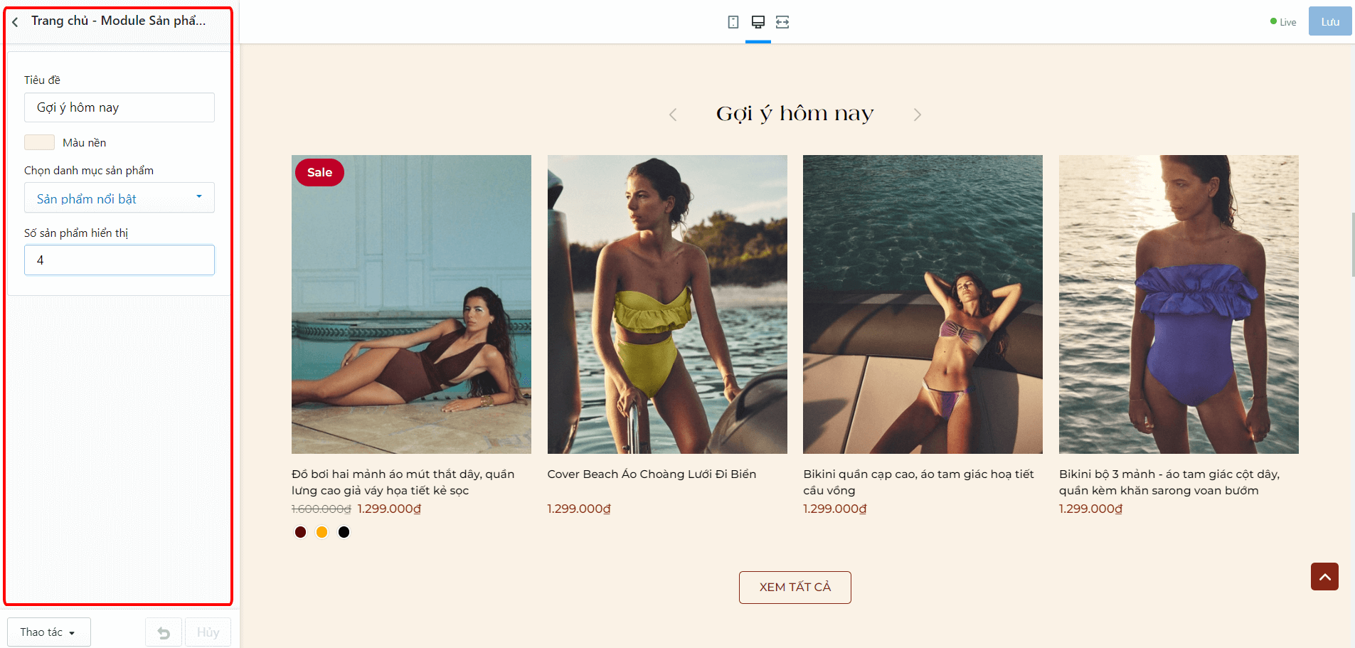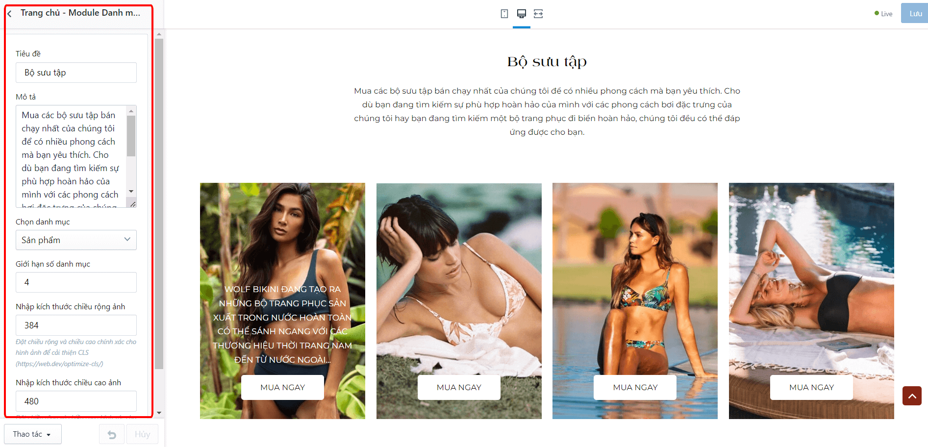 Thiết lập module sản phẩm trượt qua lại trên trang chủ