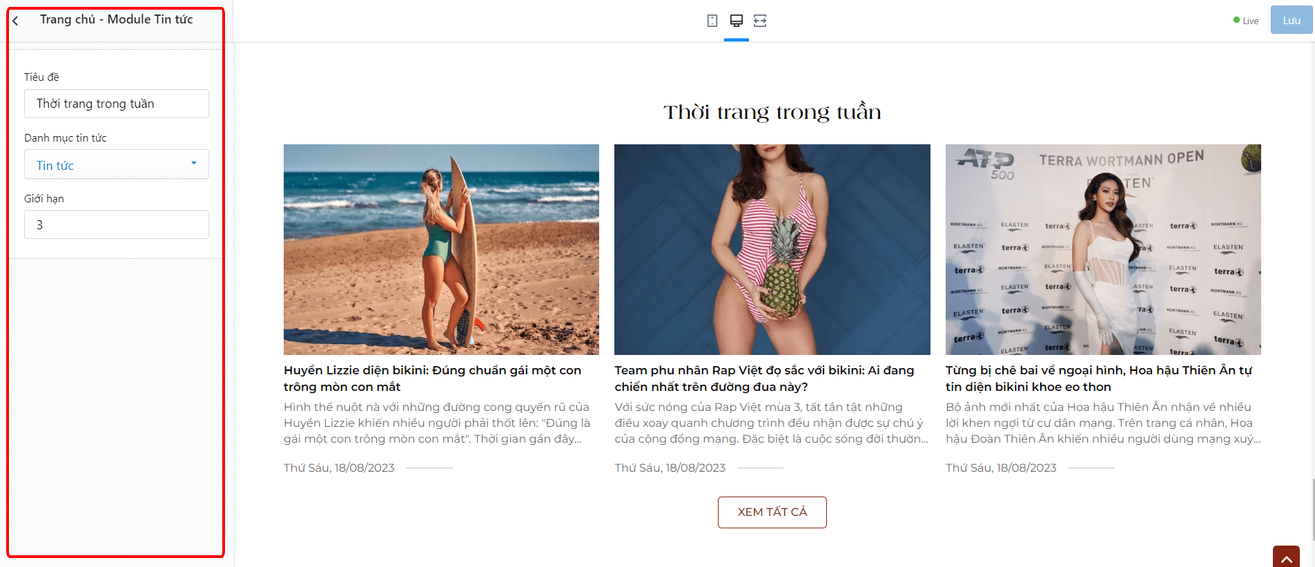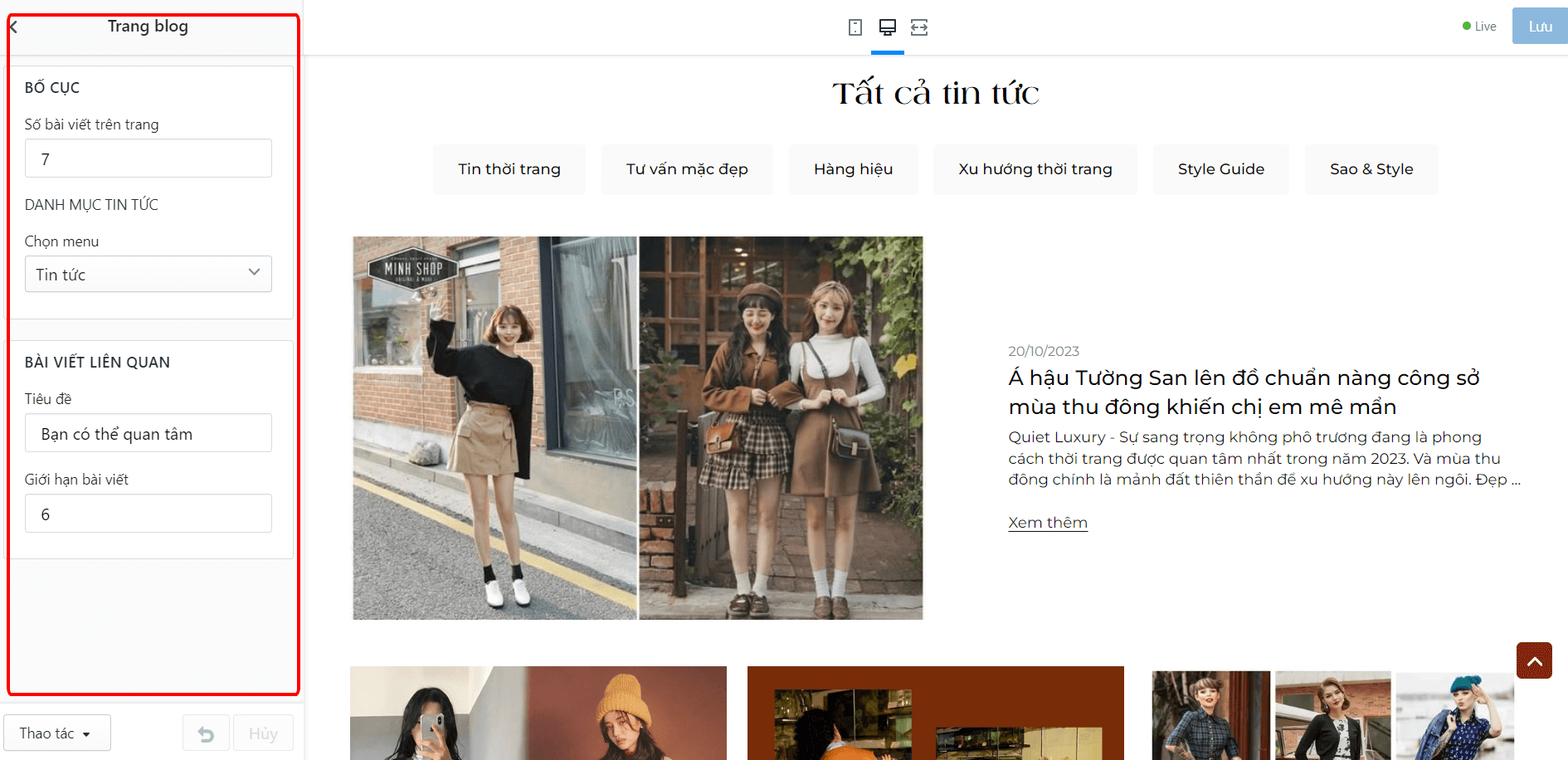 Thiết lập số bài viết hiển thị và danh mục tin ở trang Tin tức