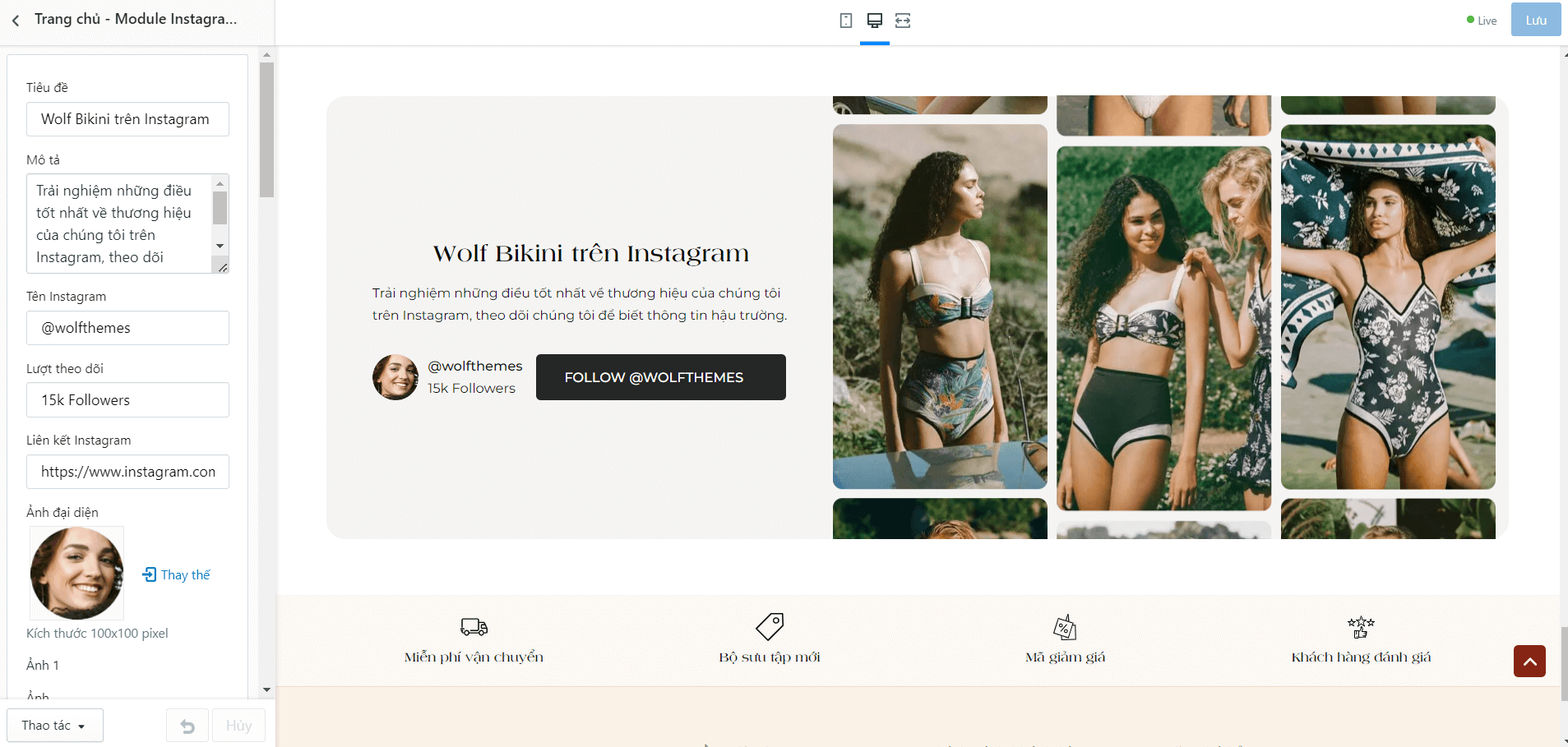 Thiết lập thông tin tài khoản instagram và ảnh khách hàng