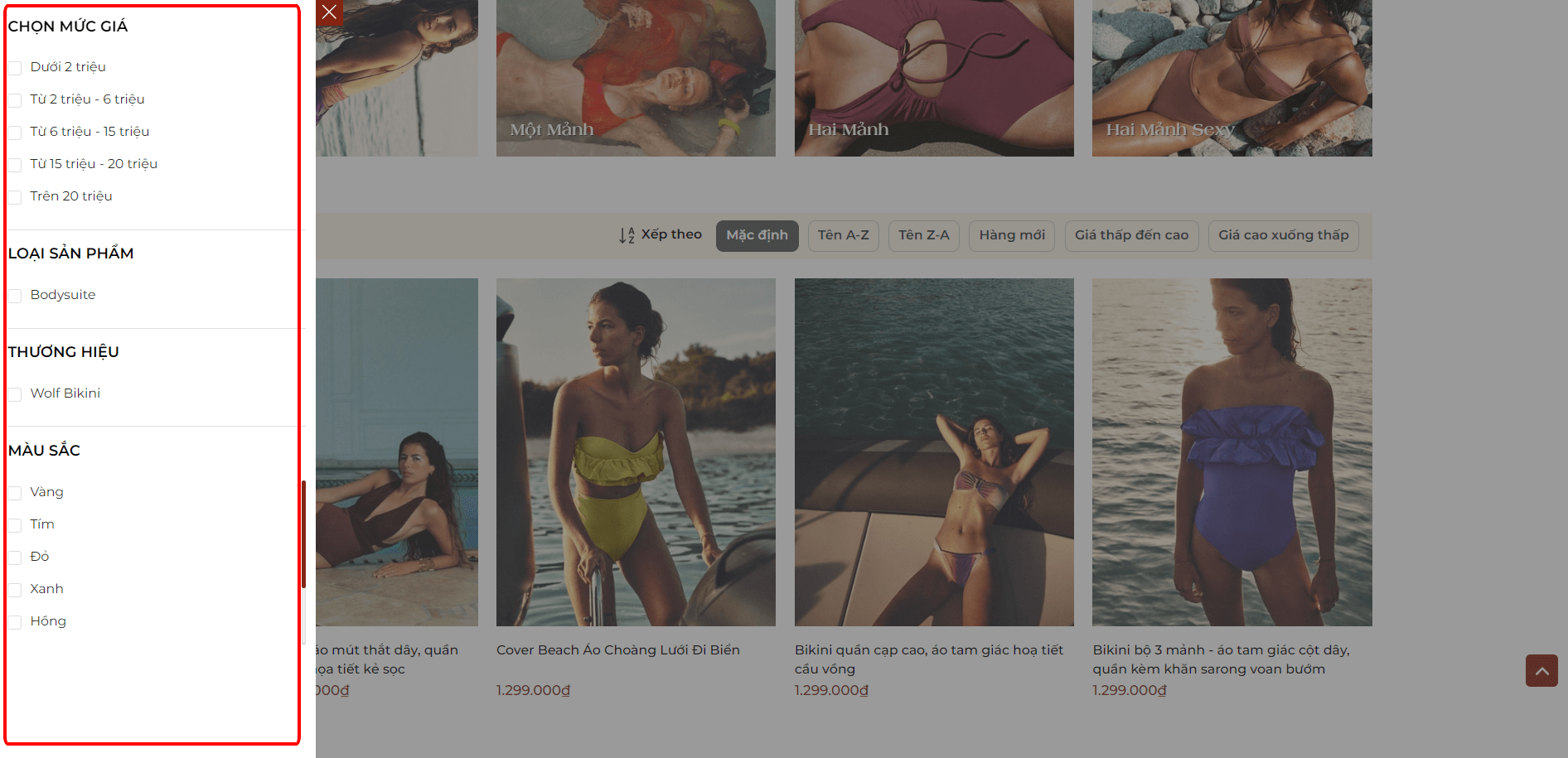 Cung cấp thiết lập 6 bộ lọc sản phẩm khác nhau, bao gồm: Thương hiệu, Loại sản phẩm, Giá, 3 Bộ lọc theo tag sản phẩm.