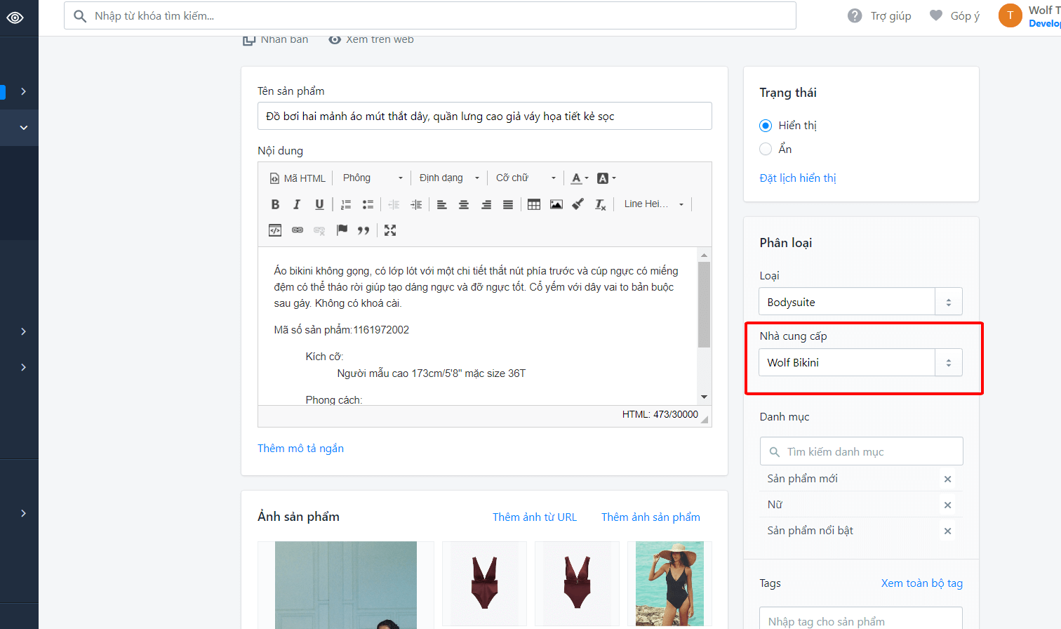Nhập tên Thương hiệu tại mục Nhà cung cấp