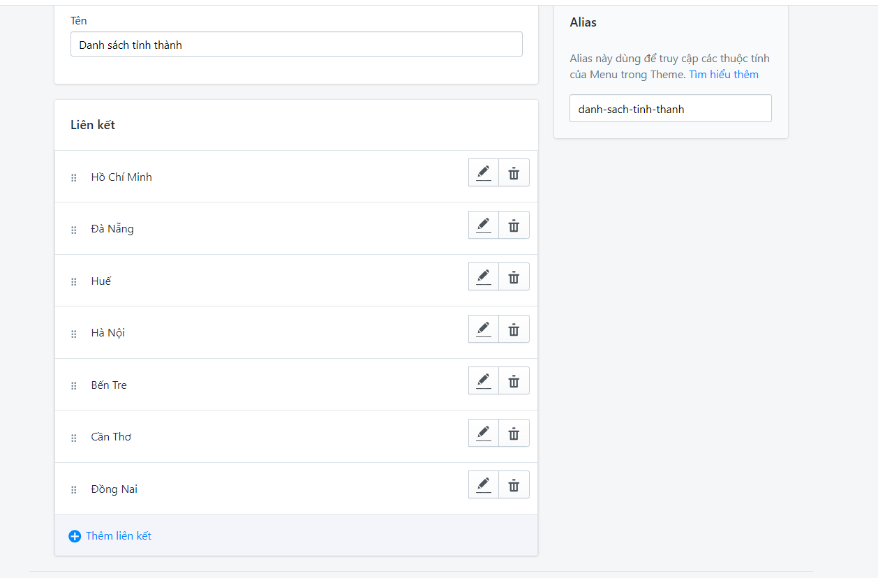 Vào thiết lập chọn Trang nội dung và Menu tỉnh thành
