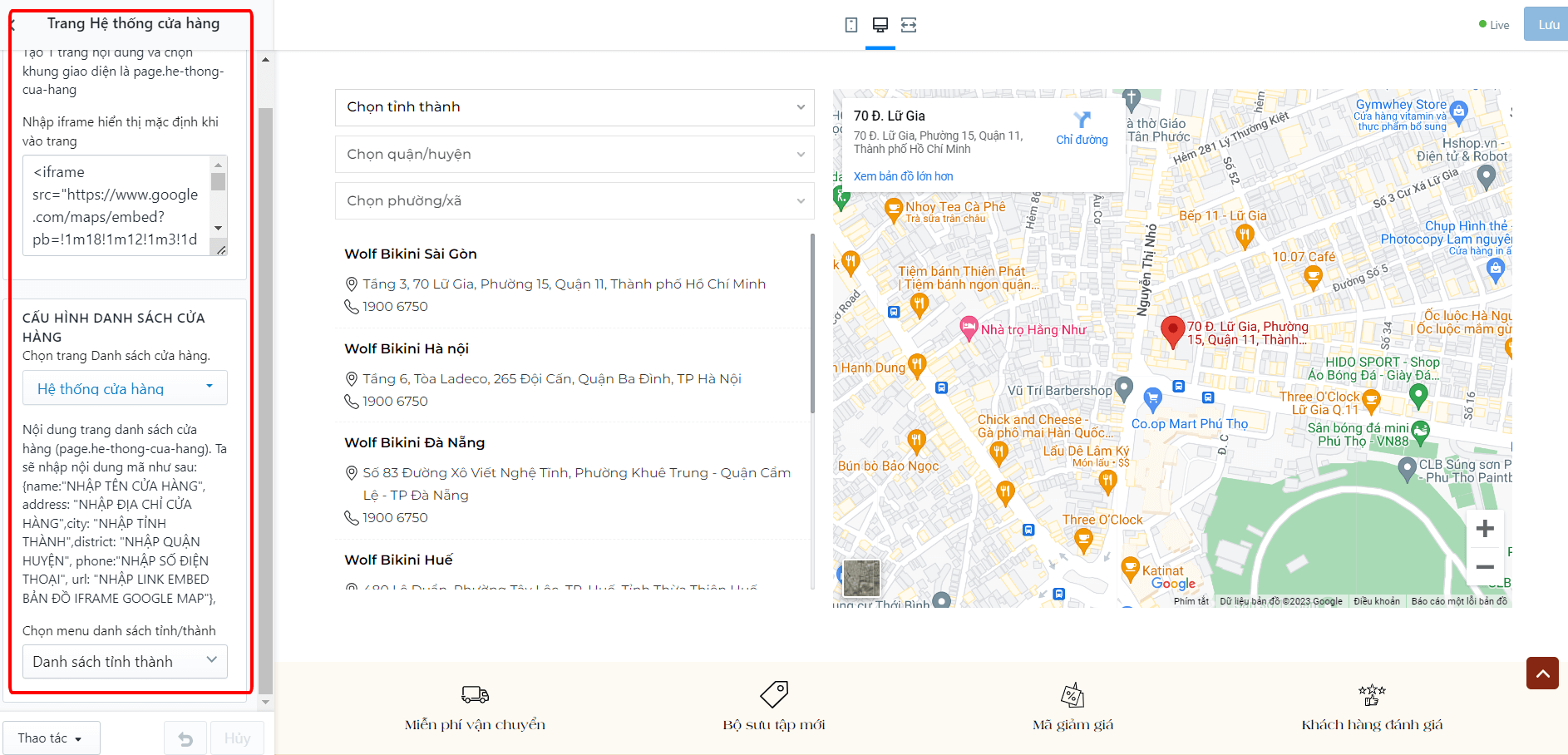 Nhập nội dung trang Danh sách cửa hàng như mẫu bên dưới