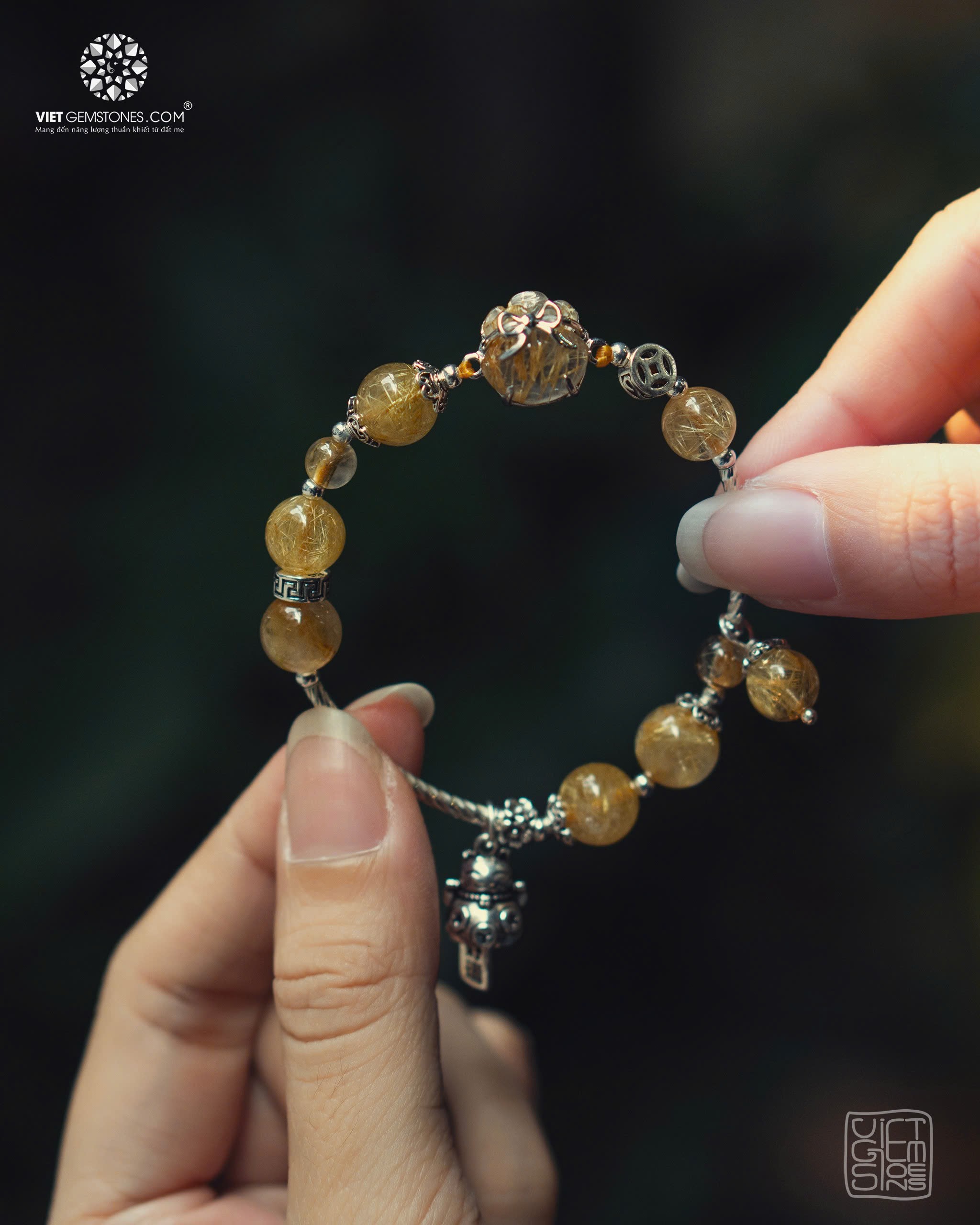 Charm bạc đi kèm không chỉ làm nổi bật vẻ đẹp của vòng tay mà còn mang ý nghĩa bảo vệ và cân bằng năng lượng. Bạc có khả năng kháng khuẩn, giúp người đeo cảm thấy an tâm và dễ chịu hơn trong sinh hoạt hằng ngày. Sự kết hợp giữa thạch anh tóc vàng và charm bạc tạo nên một món trang sức vừa hiện đại, vừa mang nét tâm linh sâu sắc.