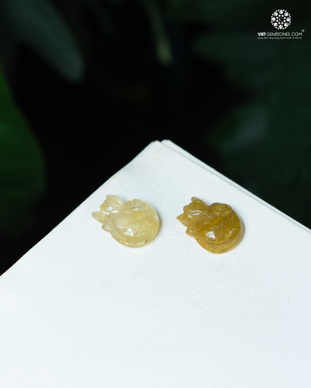 Mặt dây chuyền Hồ Ly Thạch Anh Tóc Vàng ôm Mẫu Đơn