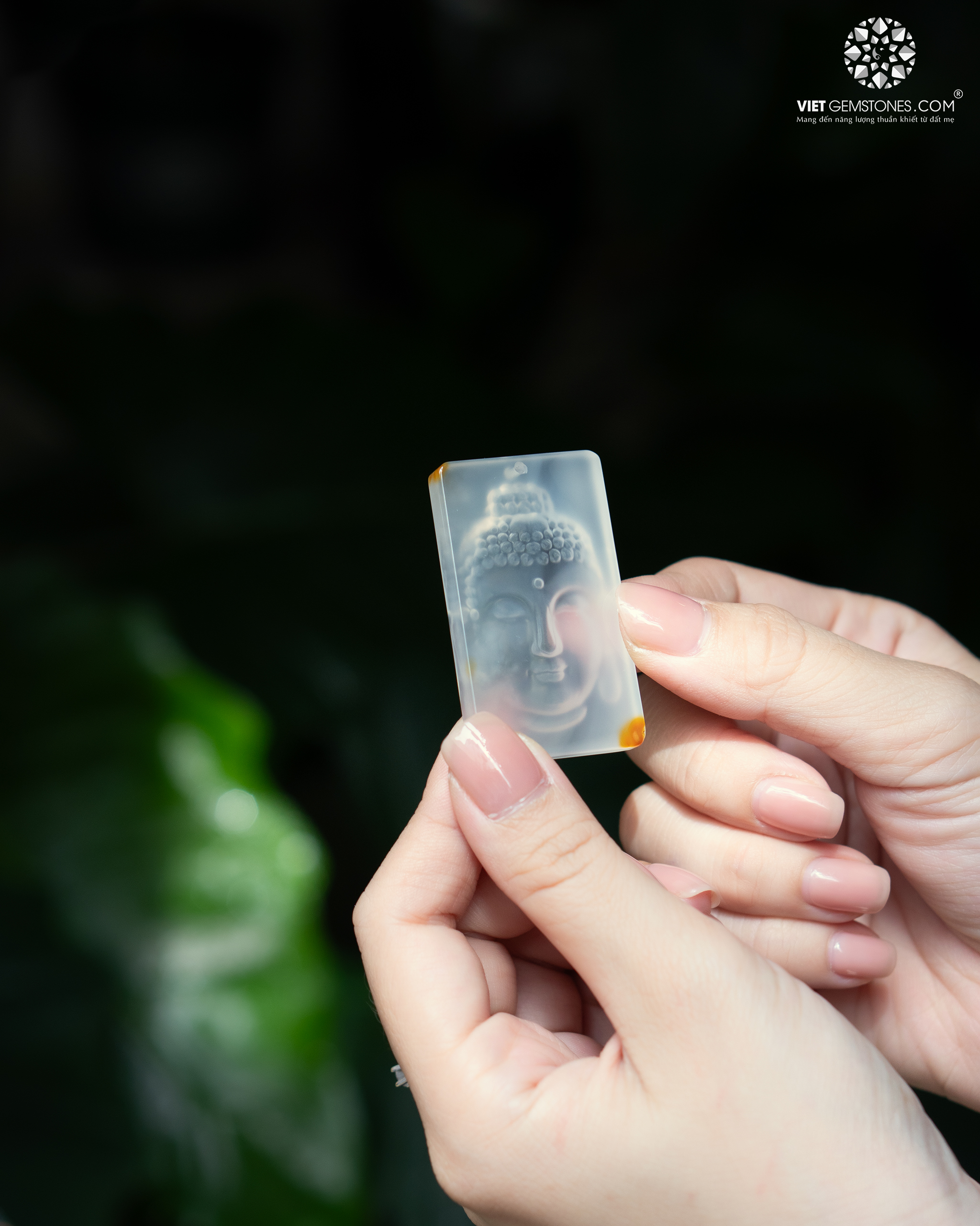 Sản phẩm sở hữu sắc trắng trong mờ đặc trưng của mã não, bề mặt mài nhẵn, cảm giác mát tay khi chạm vào. Hình tượng Quan Thế Âm Bồ Tát được chạm khắc theo kỹ thuật tạc ngược, ẩn hiện bên trong khối đá, gương mặt hiền từ, ánh nhìn tĩnh tại, mang lại cảm giác thanh tịnh và an yên cho người chiêm ngưỡng. Kỹ thuật chế tác này đòi hỏi tay nghề cao, giúp giữ trọn vẹn vẻ đẹp tự nhiên của đá và chiều sâu tâm linh của hình tượng.