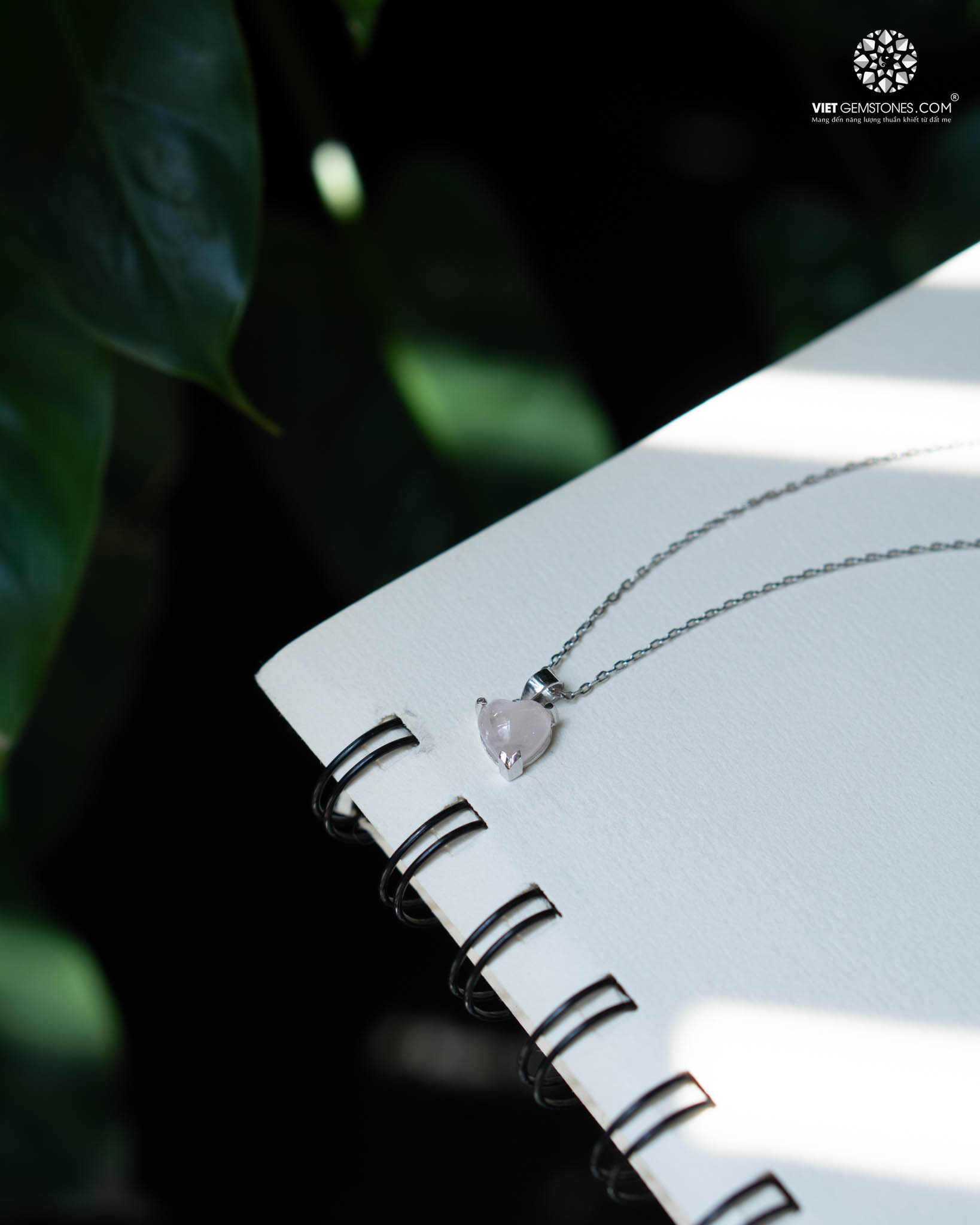 Sản phẩm cam kết sử dụng đá Thạch Anh Hồng tự nhiên và bạc 950 cao cấp, đảm bảo chất lượng và độ bền lâu dài.