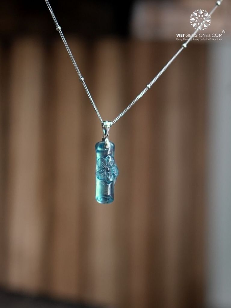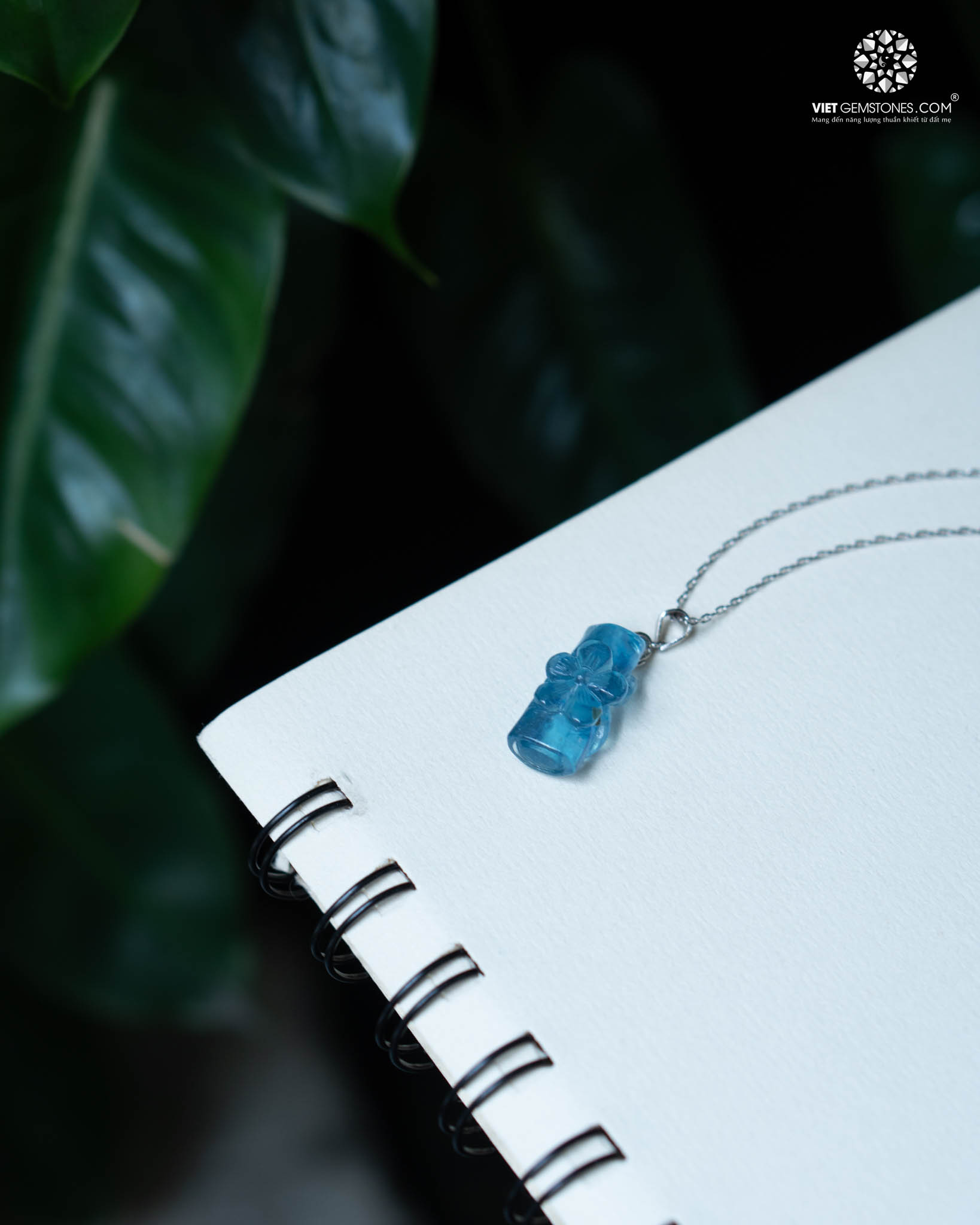 Được chế tác từ đá Aquamarine tự nhiên – viên đá mang sắc xanh biển nhẹ nhàng, trong trẻo. Aquamarine từ lâu đã được mệnh danh là “viên ngọc của đại dương”, đại diện cho sự bình an, tĩnh lặng và trí tuệ sáng suốt.