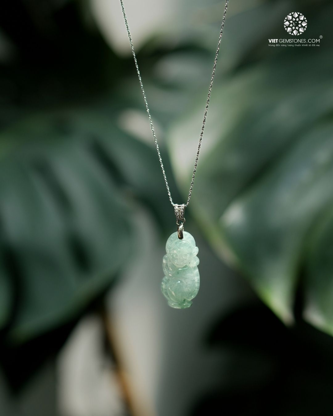 Mặt dây chuyền Tuổi Thân Cẩm Thạch Hoa Bay nổi bật với thiết kế chạm khắc hình linh vật khỉ mềm mại, kết hợp sắc xanh trong trẻo của cẩm thạch tự nhiên. Sản phẩm mang vẻ đẹp thanh tao, phù hợp đeo hàng ngày hoặc làm quà tặng ý nghĩa.