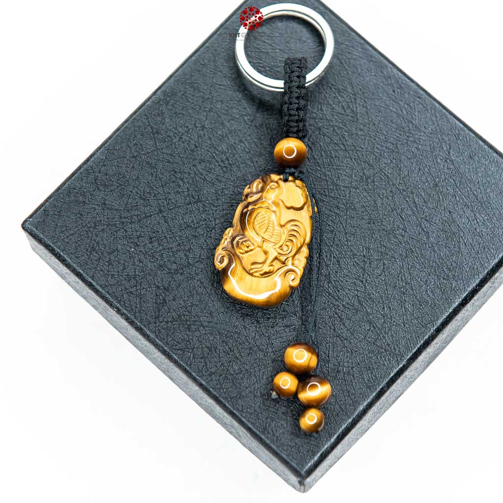 Móc khóa Con Gà bằng Mắt Hổ Vàng giúp tăng sự tự tin, cải thiện vận khí và hỗ trợ sự thăng tiến.