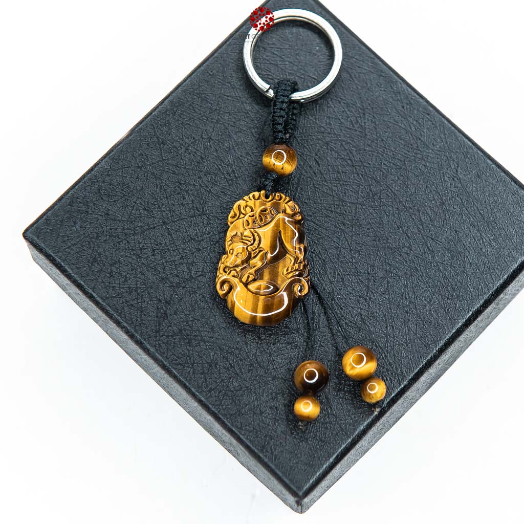 Mang theo móc khóa Con Trâu bằng đá Mắt Hổ Vàng giúp người tuổi Sửu tăng sự vững vàng trong tinh thần, ổn định năng lượng và thu hút may mắn trong công việc.