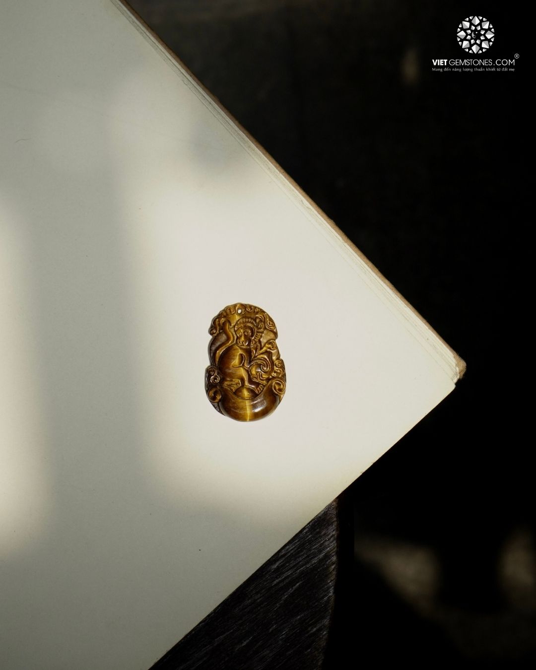 Móc khóa Con Khỉ từ đá Mắt Hổ Vàng giúp tăng khả năng tư duy, thu hút vận may và hỗ trợ công việc suôn sẻ.
