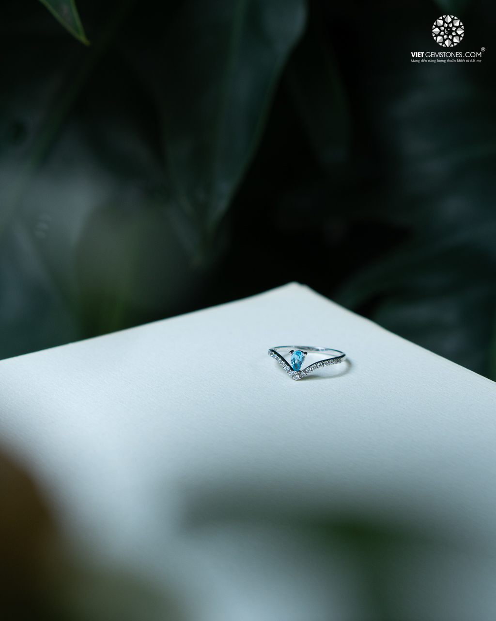 Viên đá Topaz tự nhiên, cắt giác hình giọt nước tinh xảo, là điểm nhấn nổi bật của chiếc nhẫn.