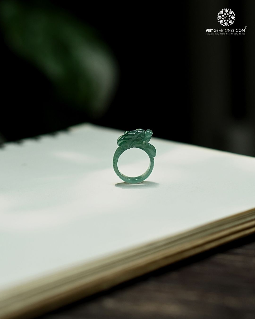 Nhẫn nguyên khối Lam Ngọc chạm rồng là sự kết hợp hoàn hảo giữa vẻ đẹp tự nhiên của đá quý và nghệ thuật chạm khắc tinh xảo, mang ý nghĩa phong thủy mạnh mẽ và giá trị thẩm mỹ cao.