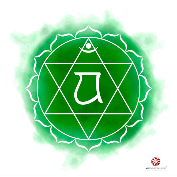 Anahata được kí hiệu bởi sắc xanh lá cây với hình tượng bông sen 12 cánh. Một số thạch trị liệu phù hợp như: Rose Quartz, Jade, Aventurine,…