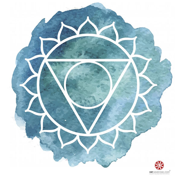 Vishuddha được hình tượng hóa bằng một bông hoa sen 16 cánh màu xanh nước. Một số thạch trị liệu cho luân xa 5 như: Aquamarine, Jade, Celestide,…