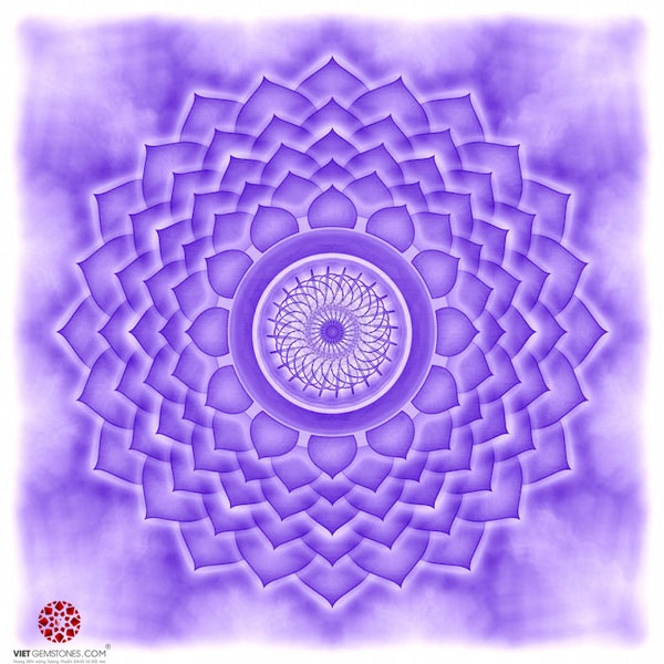 Sahasraha được hình tượng hóa bởi bông hoa sen ngàn cánh với 2 màu sắc chủ đạo là tím hoặc trắng. Một số thạch trị liệu tốt cho Luân xa 7 như: Topaz, Jade, Clear Quartz, Zircon,…