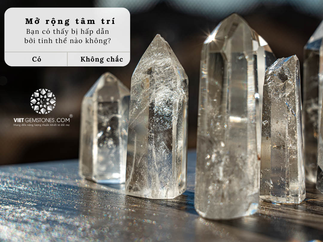 Những rung động của tinh thể là những rung động thuần khiết, và năng lượng từ đó phát ra có thể cuốn theo những năng lượng từ tư duy của bạn. Nói cách khác, nếu bạn thích thú với một tinh thể từ cái nhìn đầu tiên thì đừng ngại ngần mà chọn nó cho dù màu sắc của nó có tương khắc với ngũ hành của bạn, vì khi bạn yêu mến nó thì những rung động yêu thương sẽ lan toả một cách tự nhiên và sự kết nối cứ thế diễn ra, cho tới một ngày bạn sẽ bất ngờ với thay đổi tích cực của chính bạn và cả của viên tinh thể ấy.
