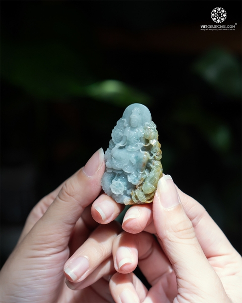 Bồ Tát Đại Thế Chí - Phật bản mệnh cho người tuổi Ngọ chạm khắc thủ công từ Jadeite tự nhiên