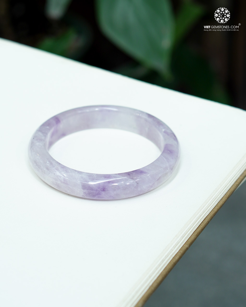 Vòng nguyên khối thạch anh tím bản hẹ được chế tác từ một khối đá liền mạch duy nhất, không ghép, không nối. Đây chính là yếu tố đầu tiên tạo nên giá trị vượt trội của sản phẩm, bởi để cắt được một chiếc vòng bản hẹ hoàn chỉnh, phôi đá phải đạt độ lớn, độ đặc và độ tinh khiết rất cao – điều không dễ tìm trong tự nhiên. Màu tím đều, ánh ngọc dịu, kết hợp cùng độ trong vừa phải tạo cảm giác chắc tay, “đeo có lực” – dấu hiệu của thạch anh chất lượng cao.
